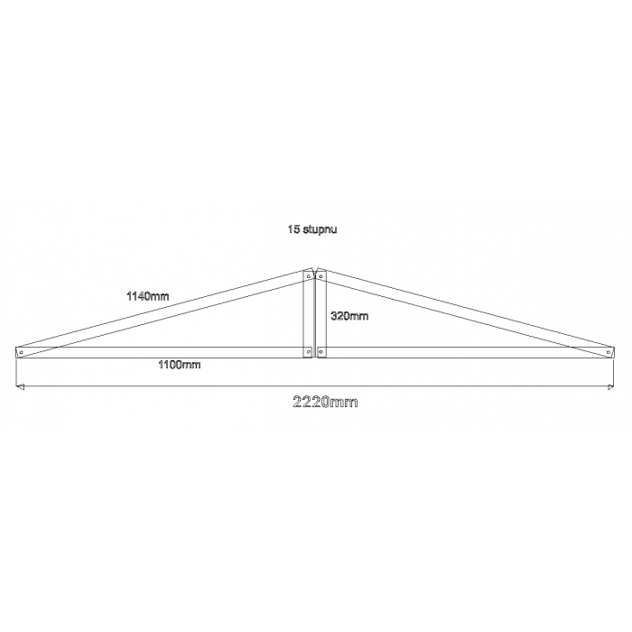 Sada dvou hliníkových trojůhelníků se sklonem 15 stupňů,